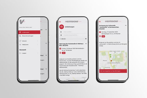 Das Intranet und die Mitarbeiter-App fungieren als zentrale Informationsmedien für die Mitarbeitenden und dienen der Kommunikation interner News, Bekanntmachungen, Tarifinformationen, Hinweise sowie Dienstpläne. Ein besonderer Wunsch des Kunden bestand darin, aktuelle Umleitungen, Straßensperrungen oder Inbetriebnahmen (z. B. von Haltestellen) für den Fahrdienst in Echtzeit zu kommunizieren.